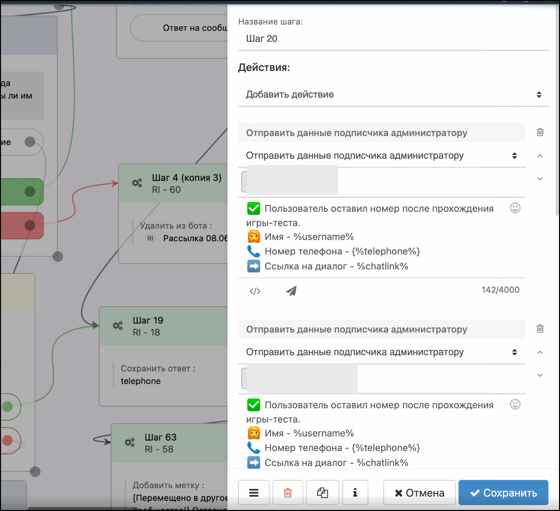 Например можно прописать условие, чтобы было уведомление администраторов о заявках: