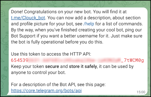 Теперь система запросит токен. Это уникальный идентификационный номер, который позволяет только одному человеку создателю использовать этого бота. Остальные не имеют доступа к нему, пока хозяин не передаст токен другому или пока не выкрадут этот токен у разработчика.