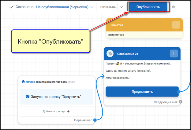 14. После того, как проверка будет завершена, вы можете нажать на кнопку «Опубликовать», чтобы бот стал доступен всем людям.
