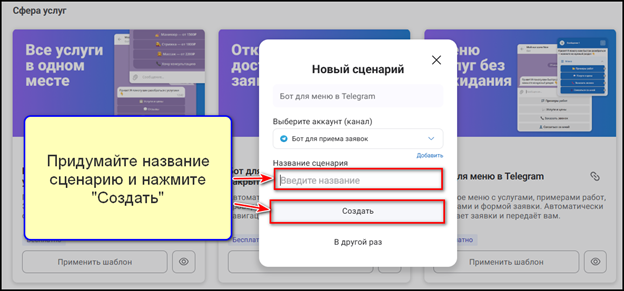 11. Придумайте название новому сценарию и нажмите «Создать».