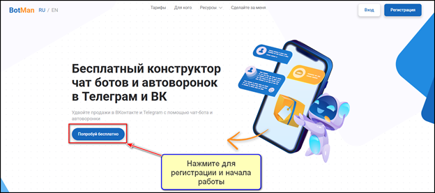 Популярный конструктор чат-ботов Botman для ВК, Телеграм и Авито.