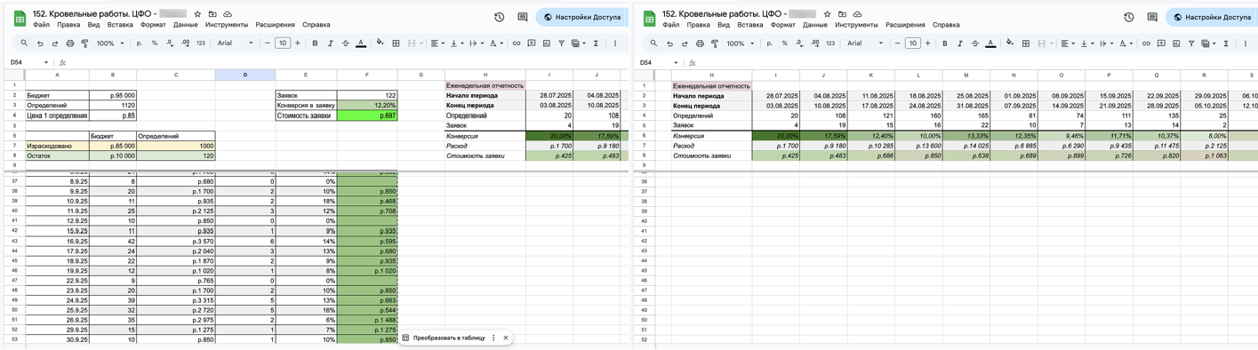 Вы всегда держите руку на пульсе. Мы предоставляем доступ к сводной таблице, где видна ежедневная статистика: бюджет, количество звонков, конверсия и стоимость заявки.