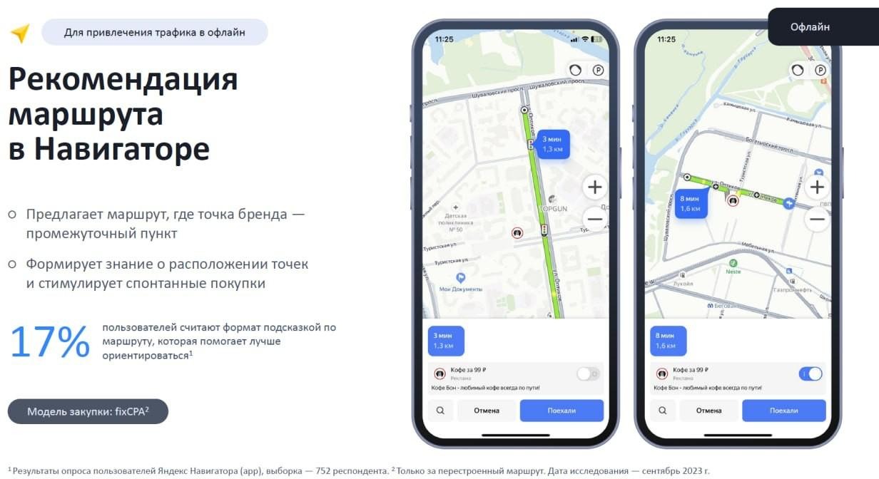 Вы едете мимо кофейни, и приложение предлагает вам заехать именно туда, перехватывая вас с маршрута.