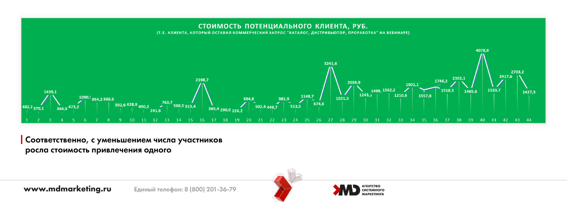 Ну и так как целью всего происходящего был коммерческий запрос от клиента, покажем и стоимость привлечения потенциального клиента.