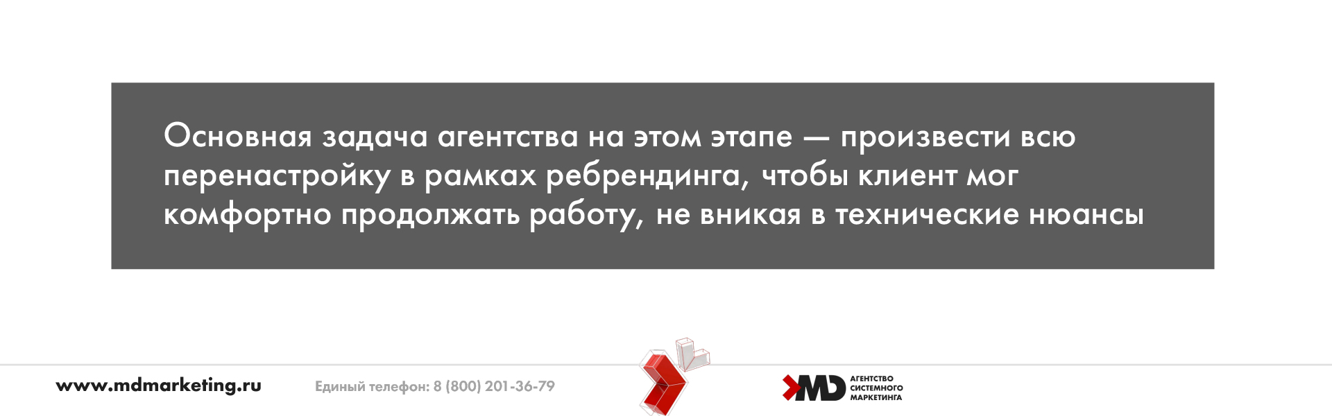 По итогам обсуждения проблемы и возможных решений, перед агентством системного маркетинга MDM были поставлены следующие задачи: