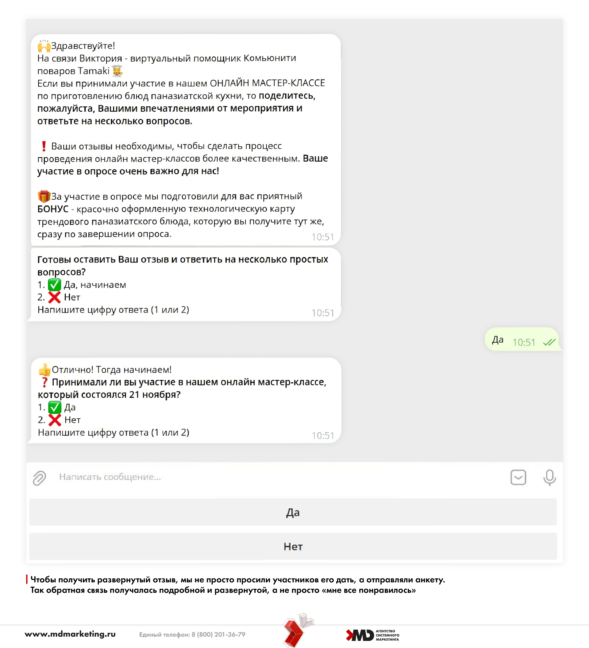 Также мы сделали автоматический сбор отзывов — добавили в классическую вебинарную цепочку еще одно письмо и сообщение в мессенджер с нехитрой просьбой оставить отзыв. Так мы собрали хорошую базу социальных доказательств для дальнейшего продвижения Академии и компании Tamaki.