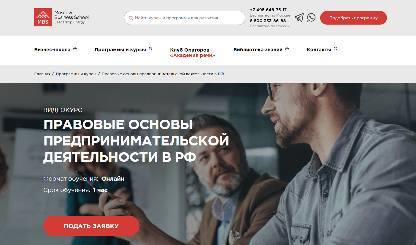 Правовые основы предпринимательской деятельности — Moscow Business School