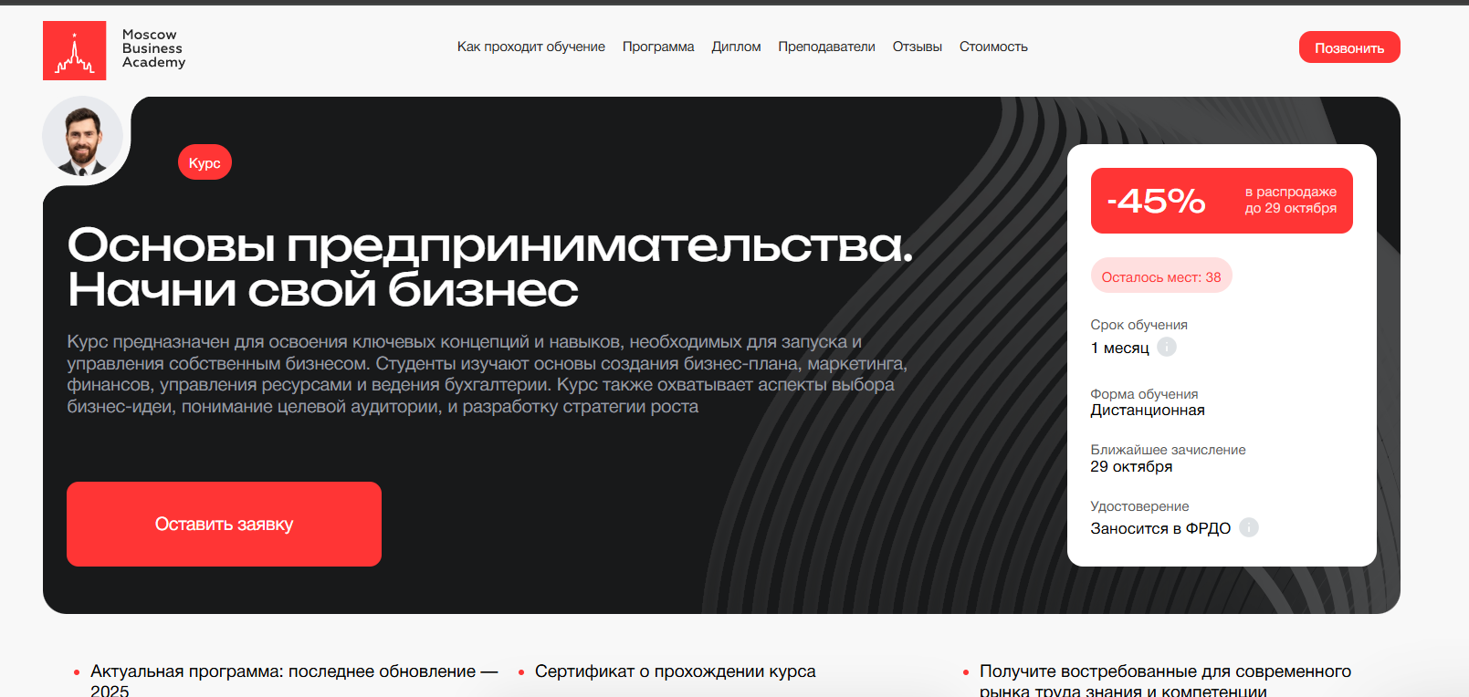 Сайт: https://moscow.mba/programs/course/online/osnovi-predprenimatelsva-nachni-svoy-business