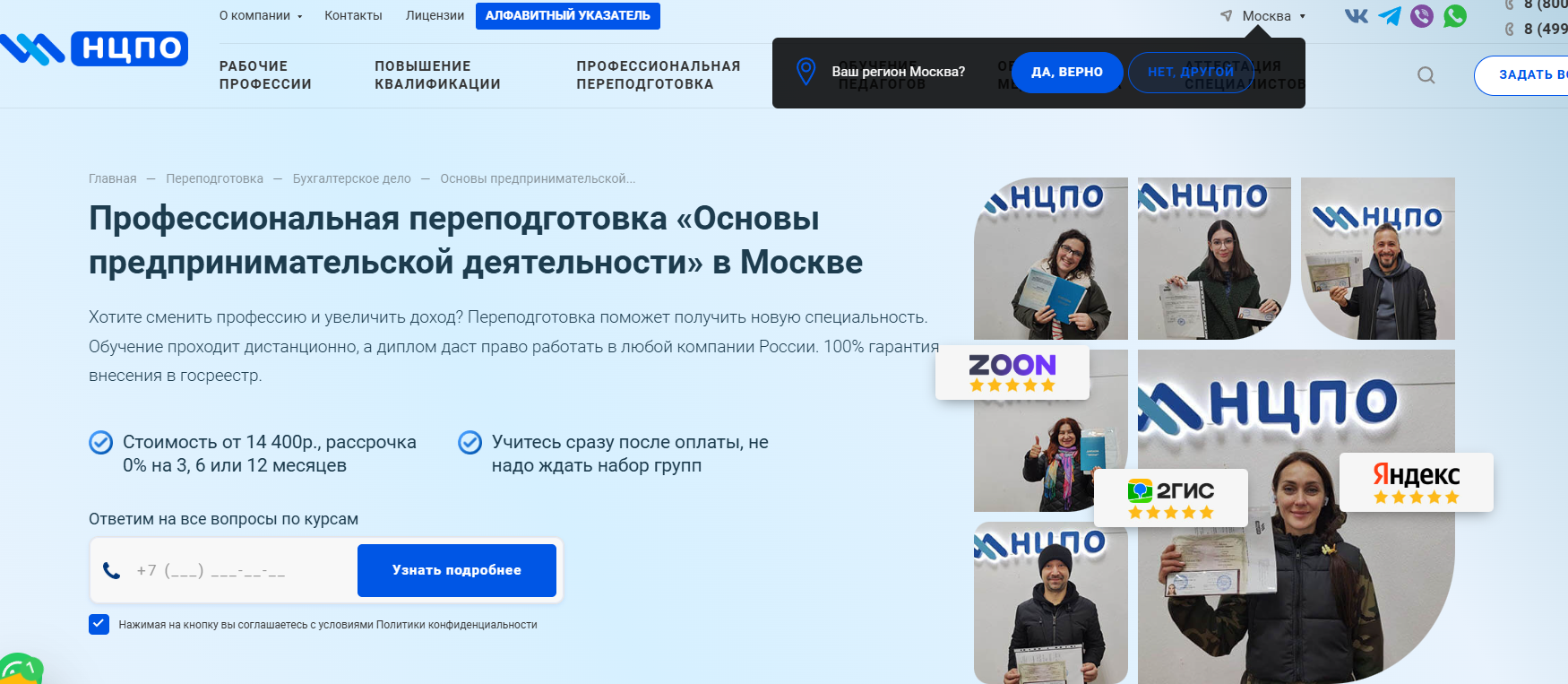 Основы предпринимательства от НЦПО — программа профессиональной переподготовки с углублённым изучением организационно-правовых форм и ресурсного обеспечения деятельности.