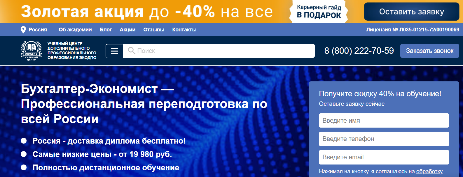 ✨ Бухгалтер-экономист от ЭКОДПО — удаленный формат обучения для специалистов из любого региона России с доступом к образовательной платформе и получением официального диплома.