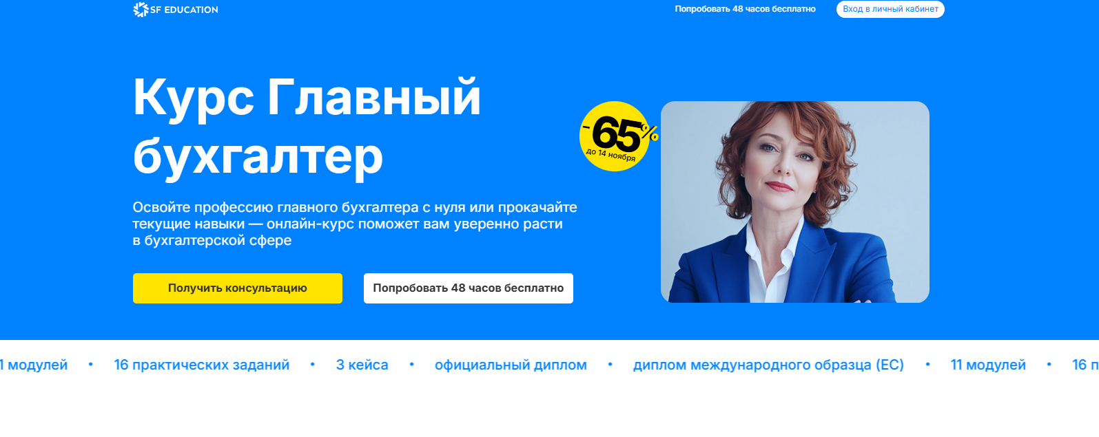 Практический курс главного бухгалтера от SF Education включает 49 уроков и 94 часа практики для специалистов, стремящихся освоить профессию дистанционно. Образовательные программы дополнительного профессионального образования построены с акцентом на финансовую аналитику и работу с современными программами. Обучение бухгалтеров включает бонусный тренажер заданий на позиции в финансы и аналитику. Слушатели курсов получают доступ к актуальным учебным материалам и могут проходить обучение в любое удобное время на образовательных платформах.