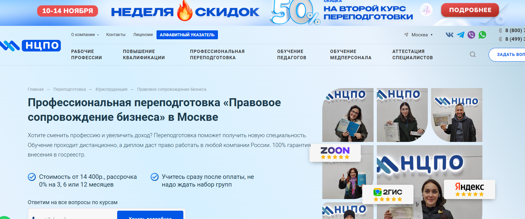 Правовое сопровождение бизнеса от НЦПО — переподготовка по всем аспектам юридического консультирования от регистрации предприятия до сопровождения сложных сделок с партнерами организации.