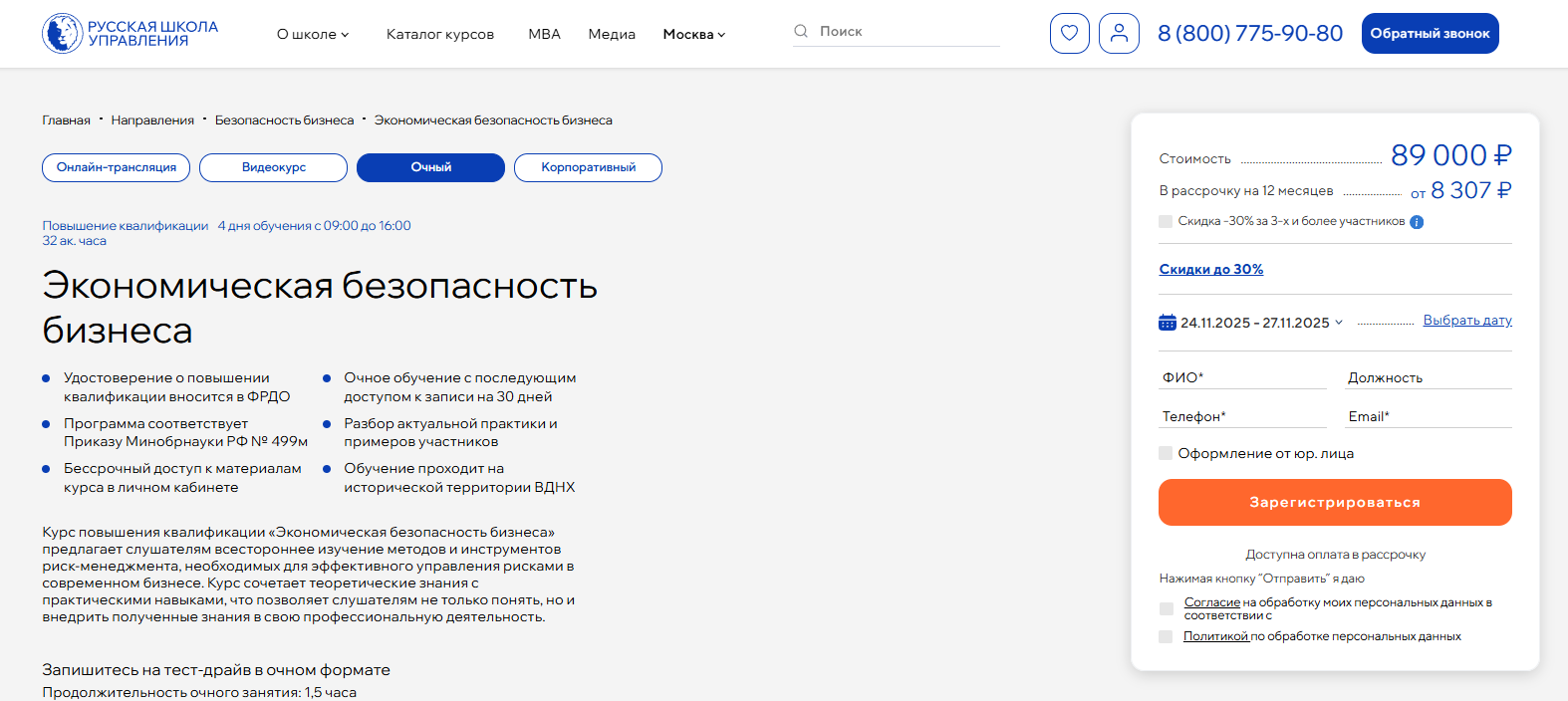 Экономическая безопасность бизнеса от Русской Школы Управления — интенсивный трехдневный курс по управлению рисками с 70% практики и удостоверением государственного образца.