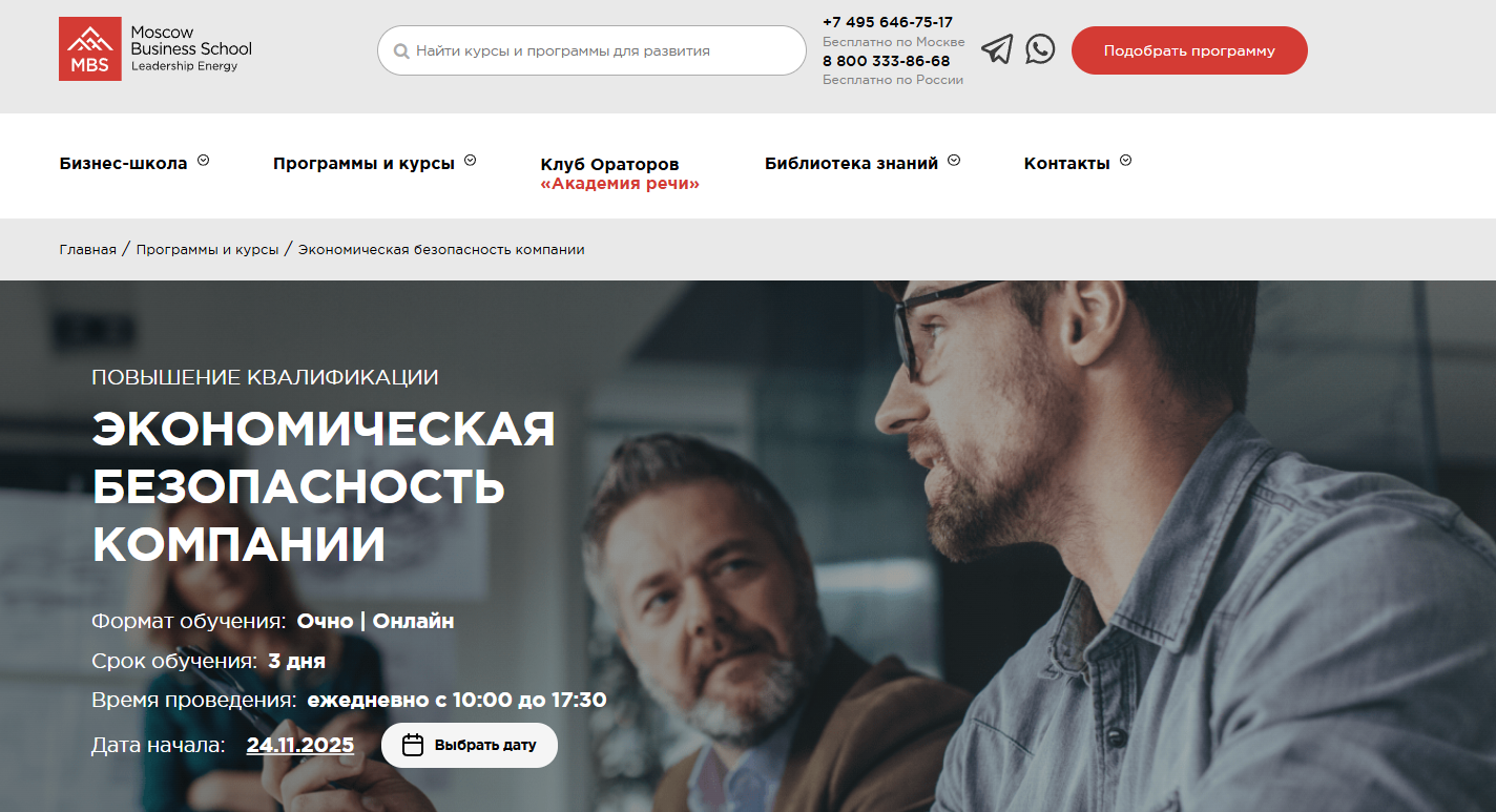⭐ Экономическая безопасность компании от Moscow Business School — однодневный семинар-практикум по защите договорной работы и конкурентной разведке для специалистов предприятий.