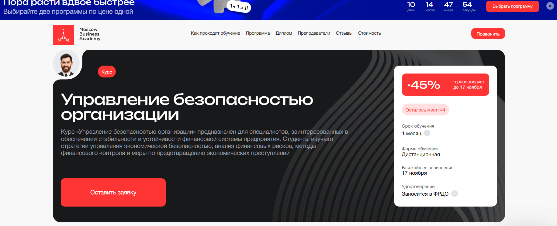 Сайт: https://moscow.mba/programs/course/online/upravlenie-bezopasnostyu-organizacii