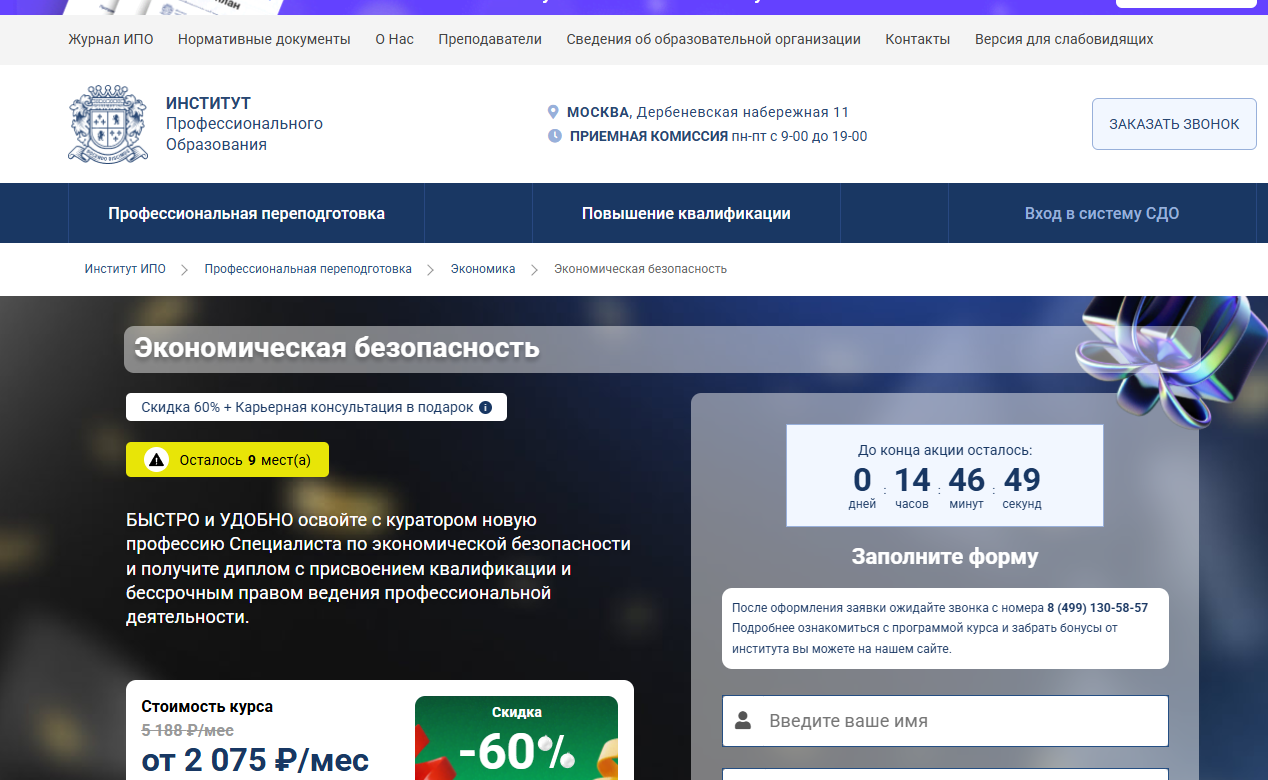 Экономическая безопасность от ИПО — дистанционная профпереподготовка с индивидуальным графиком обучения и персональным куратором для специалистов из любого региона.