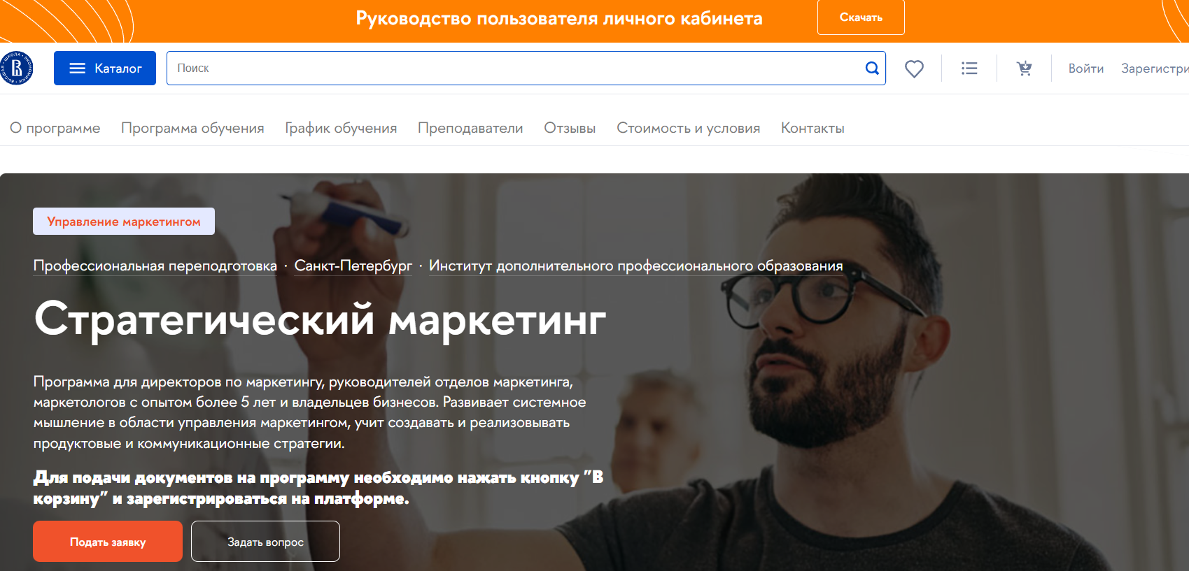 Стратегический маркетинг от НИУ ВШЭ Санкт-Петербург — программа переподготовки на 612 академических часов с акцентом на создание продуктовых и коммуникационных стратегий, включает очные модули и онлайн-сессии с тьюторами.