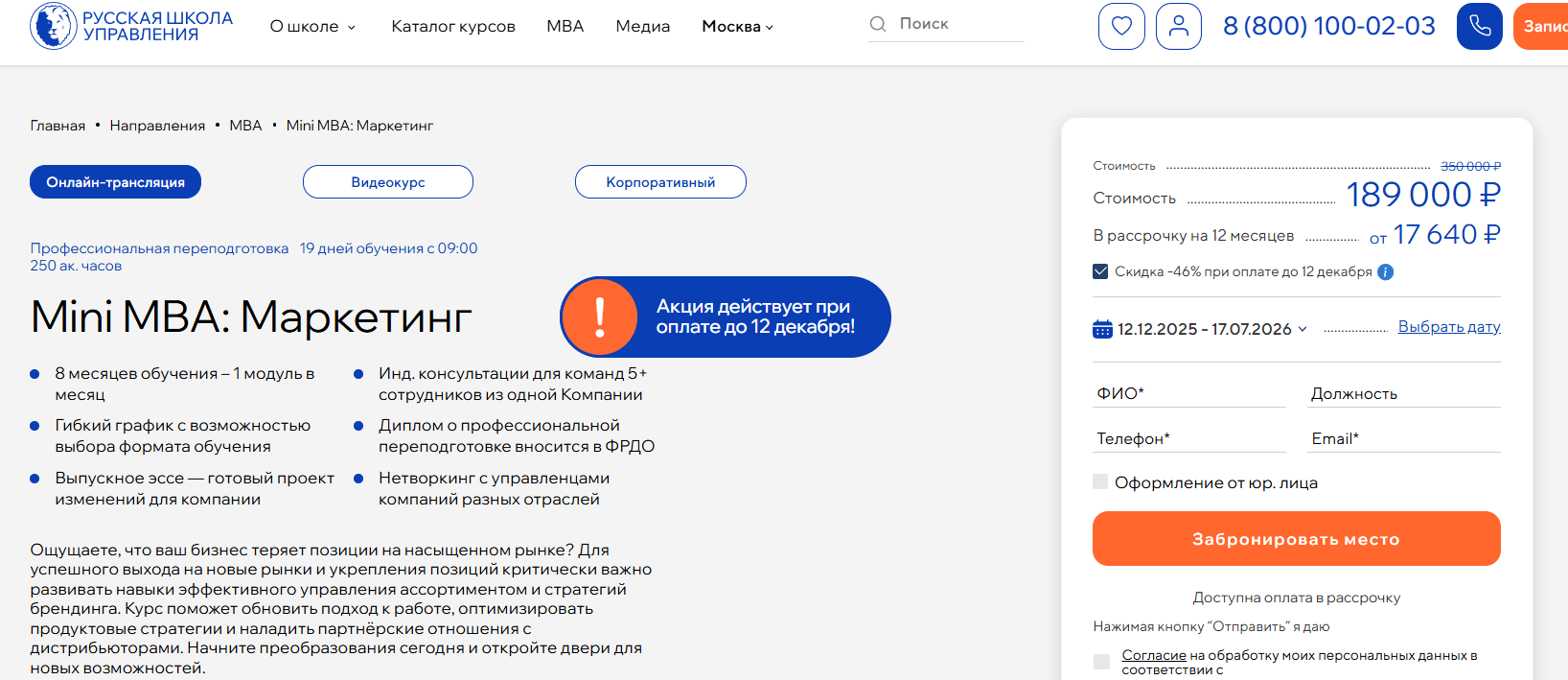 Сайт: https://moscow.mba/programs/mini/online/marketing-management