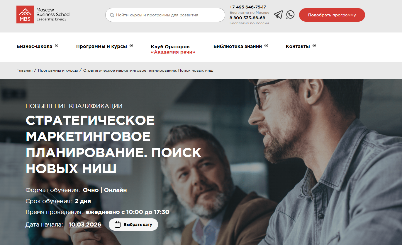 Стратегическое маркетинговое планирование от Moscow Business School — практикум-кейс по анализу продукта и выявлению зон роста с возможностью очного или онлайн-обучения.