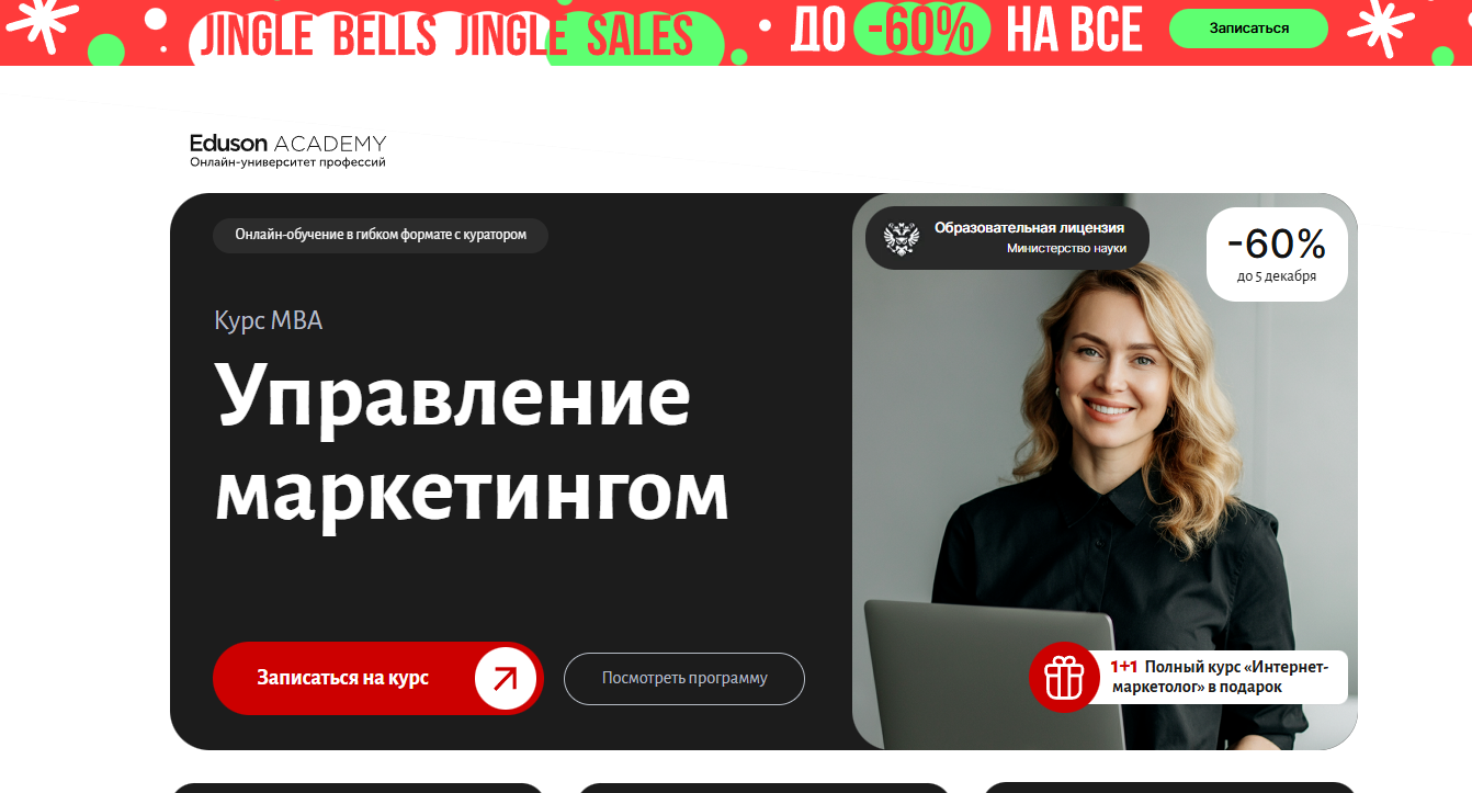 MBA «Управление маркетингом» от Eduson Academy — комплексная программа с 476 интерактивными уроками от экспертов Mail.ru, Yandex и VK, включает 75 бизнес-кейсов и два диплома, верифицированных Сколково.