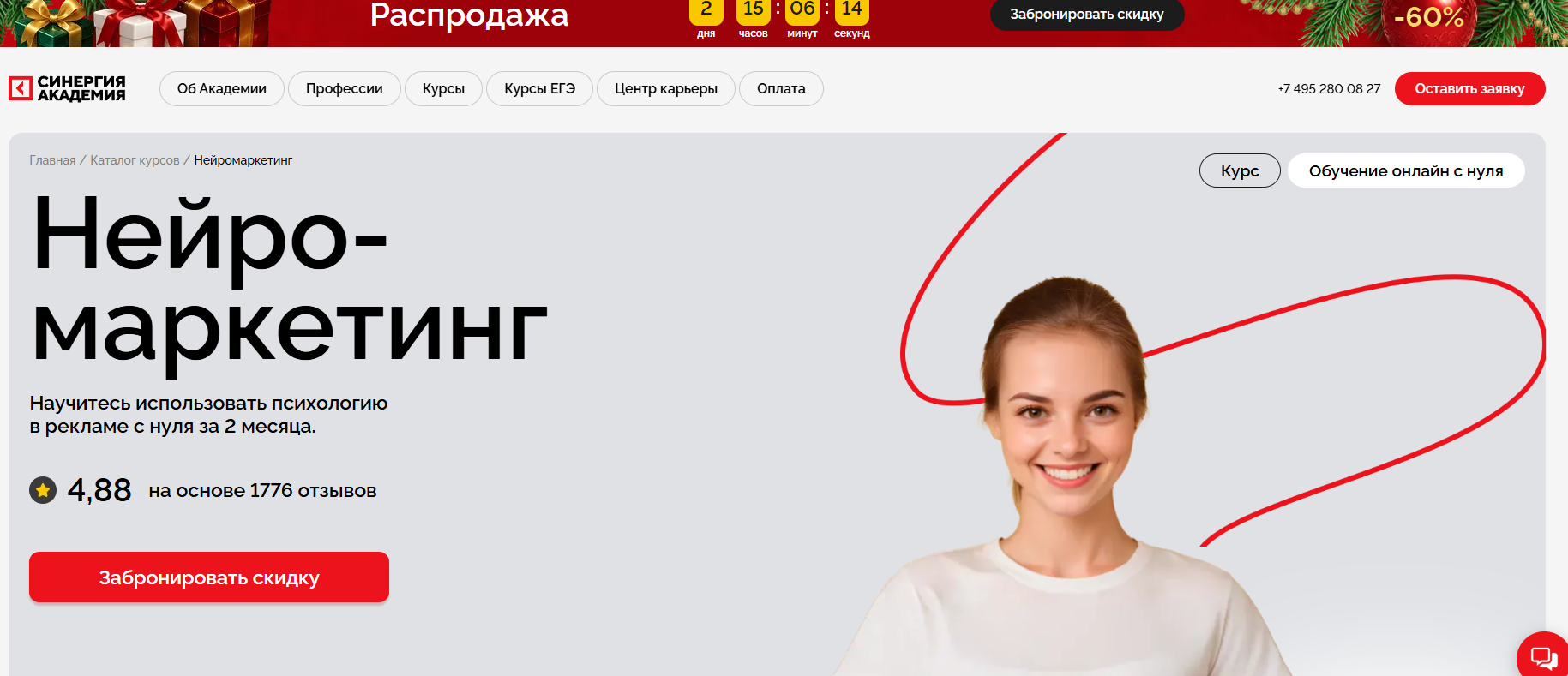 ⭐ Нейромаркетинг от Академии Синергия — комплексный двухмесячный курс с освоением психологии рекламы, технологий Eye tracking и вебвизора, включает 20 практических заданий и создание 3 проектов в портфолио.