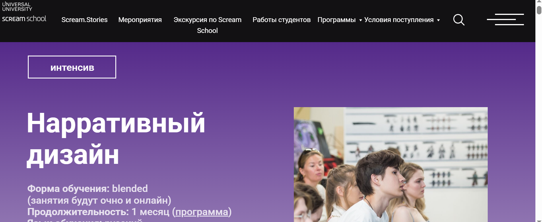 - Короткие программы обучения — 2-3 месяца для освоения базовых принципов нарративного дизайна