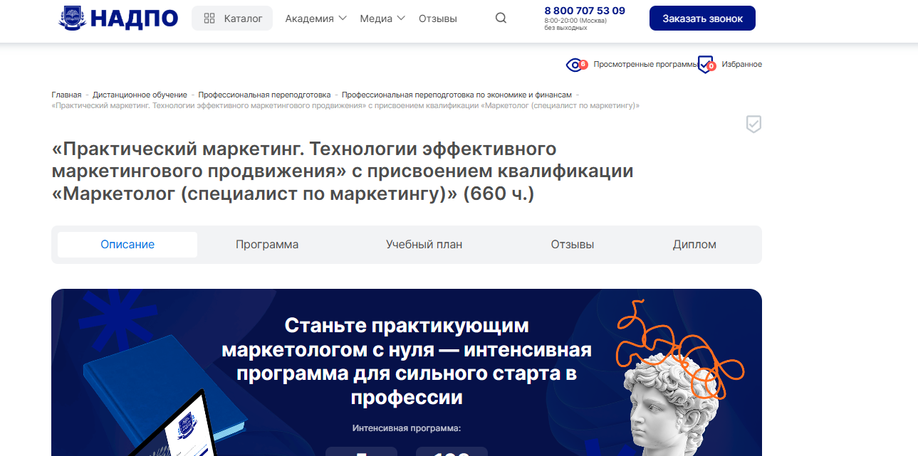 Практический маркетинг от НАДПО — курс профессиональной переподготовки с присвоением квалификации и дипломом государственного образца для работы в области маркетинга.