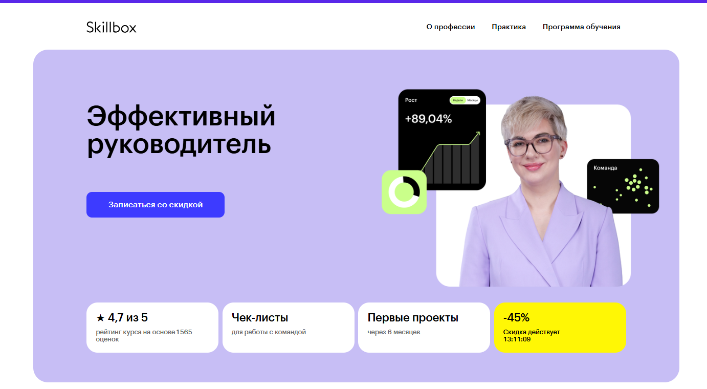 Эффективный руководитель от Skillbox — программа для новичков и менеджеров среднего звена.