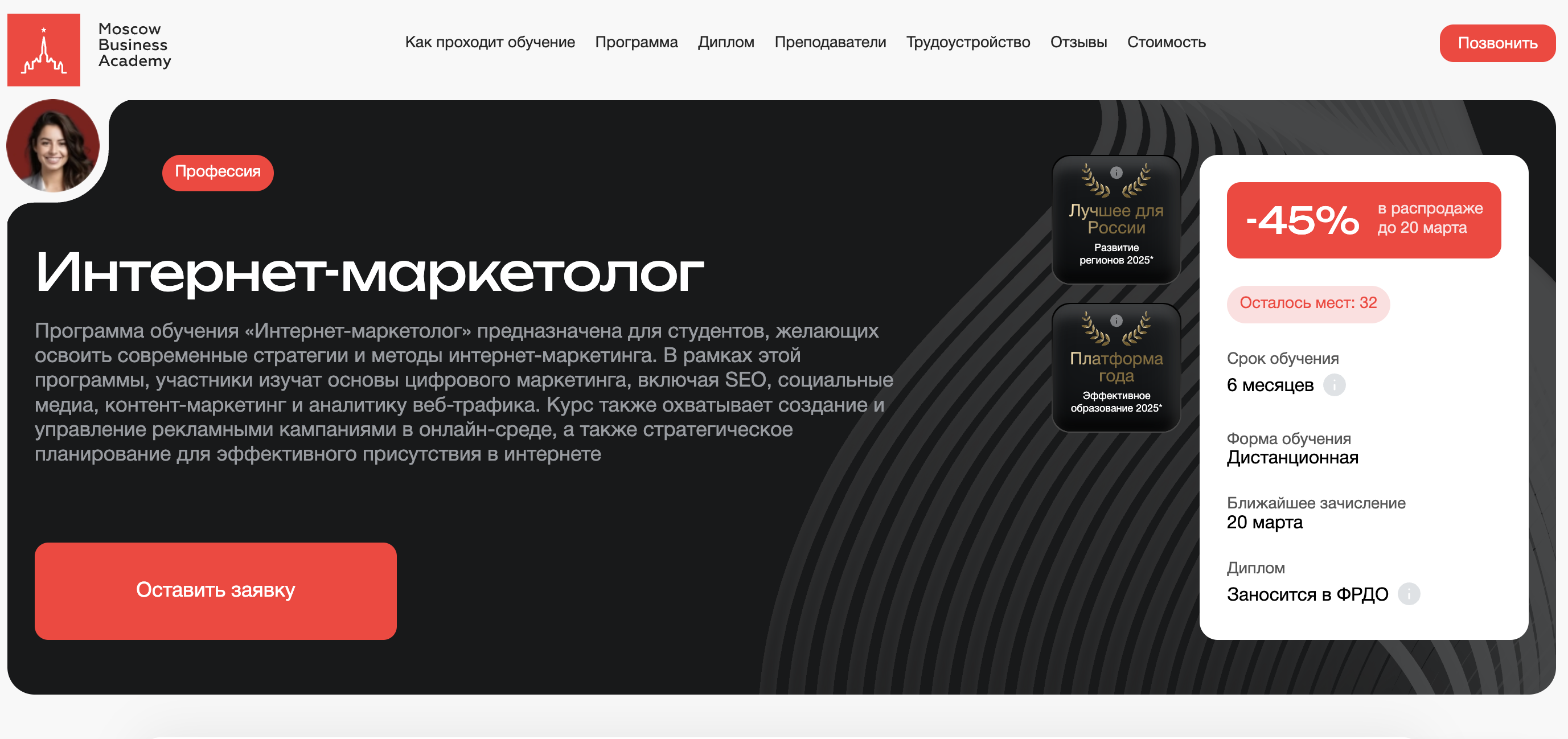 Профессия Интернет-маркетолог — Московская Бизнес Академия: