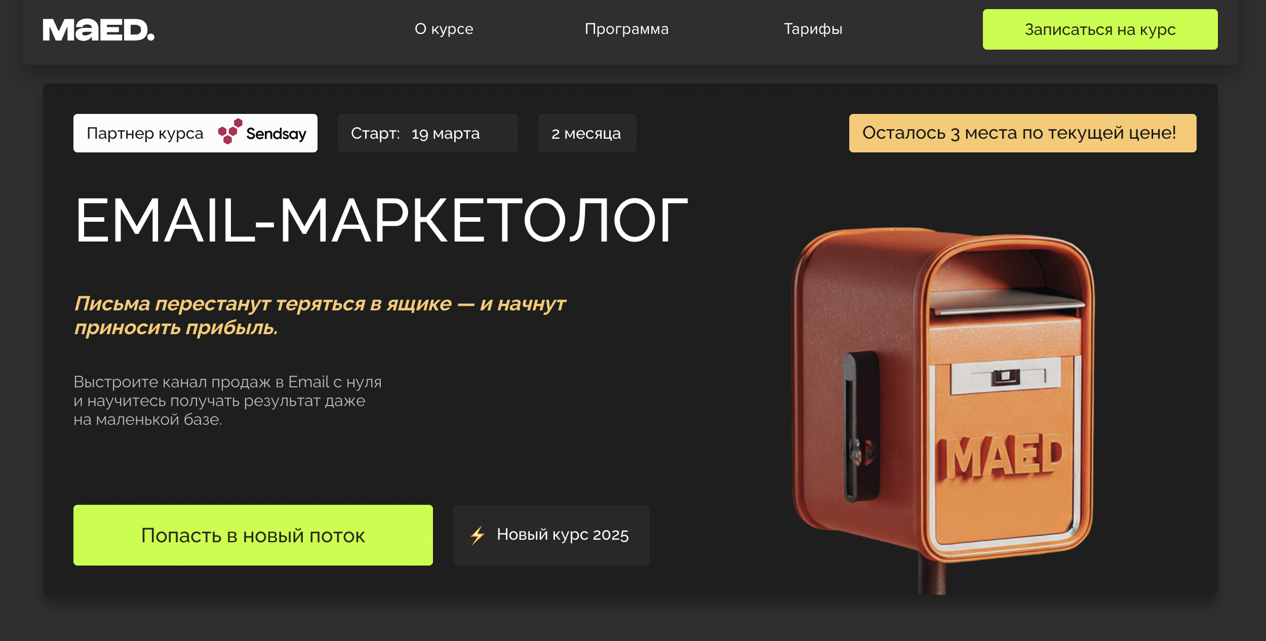 - Сайт: https://maed.ru/catalog/email-marketolog