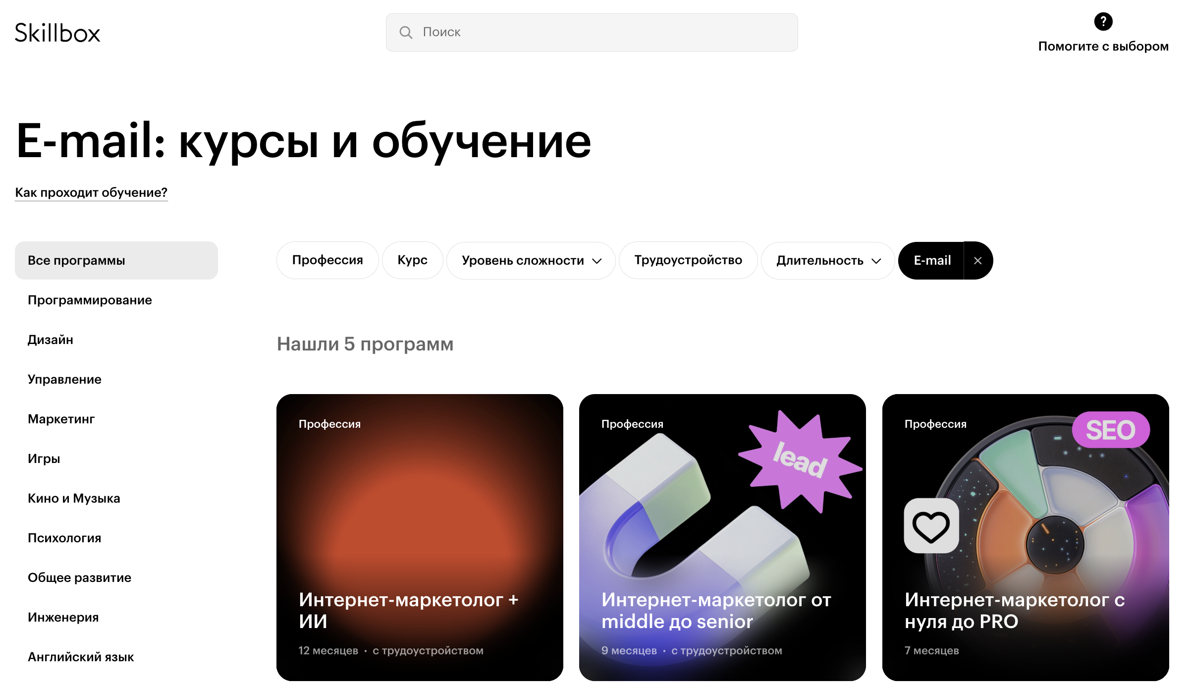 Инбокс Маркетинг — Обучение email-маркетингу — специализированная образовательная платформа, ориентированная именно на email. Здесь можно найти материалы по созданию эффективных рассылок, работе с базой подписчиков, написанию продающих текстов для писем. Подходит тем, кто хочет прокачать конкретный навык, а не изучать маркетинг в целом.
