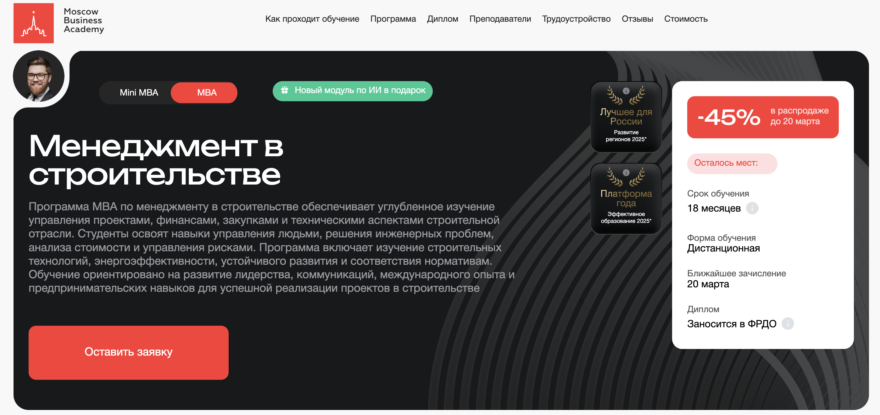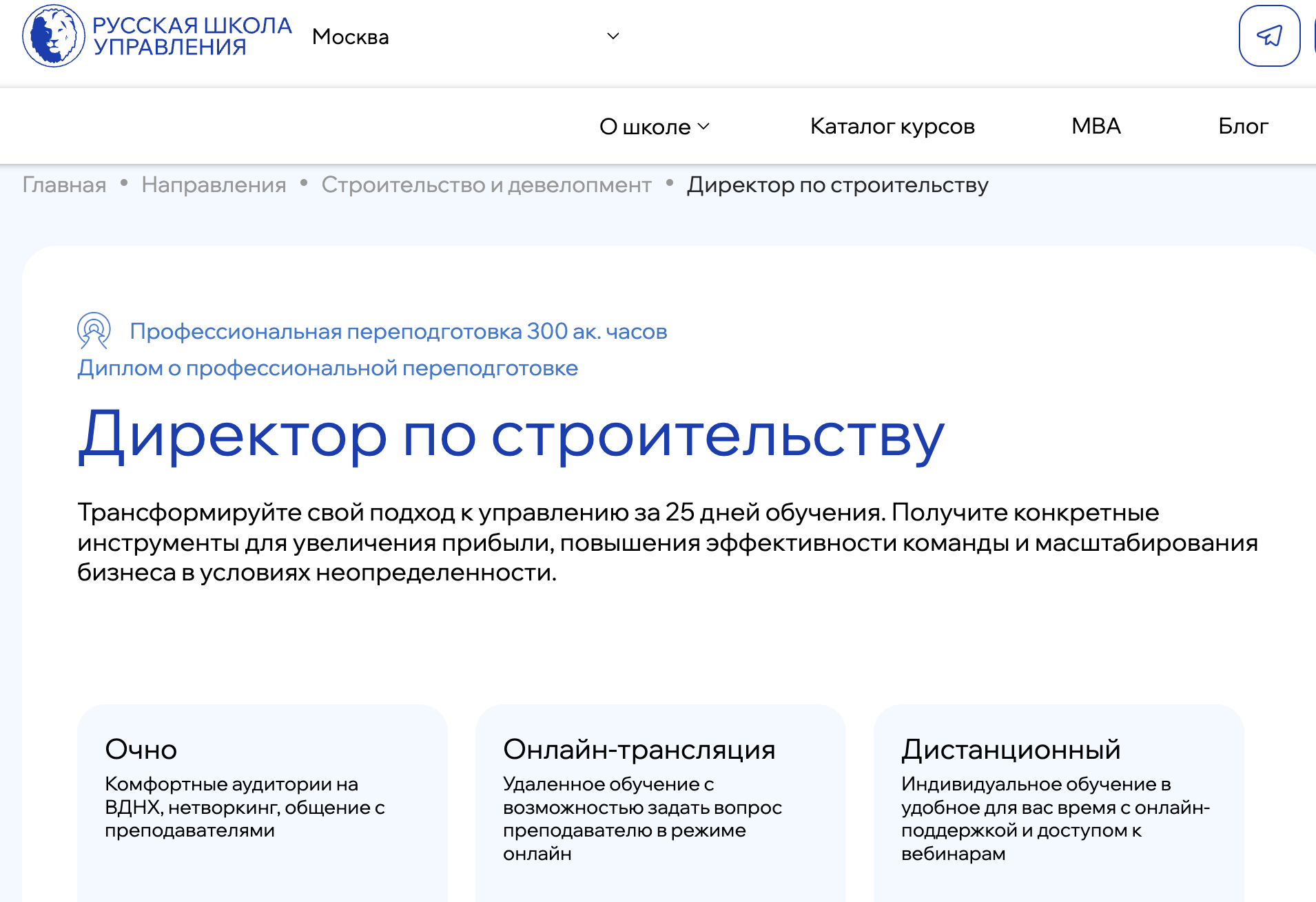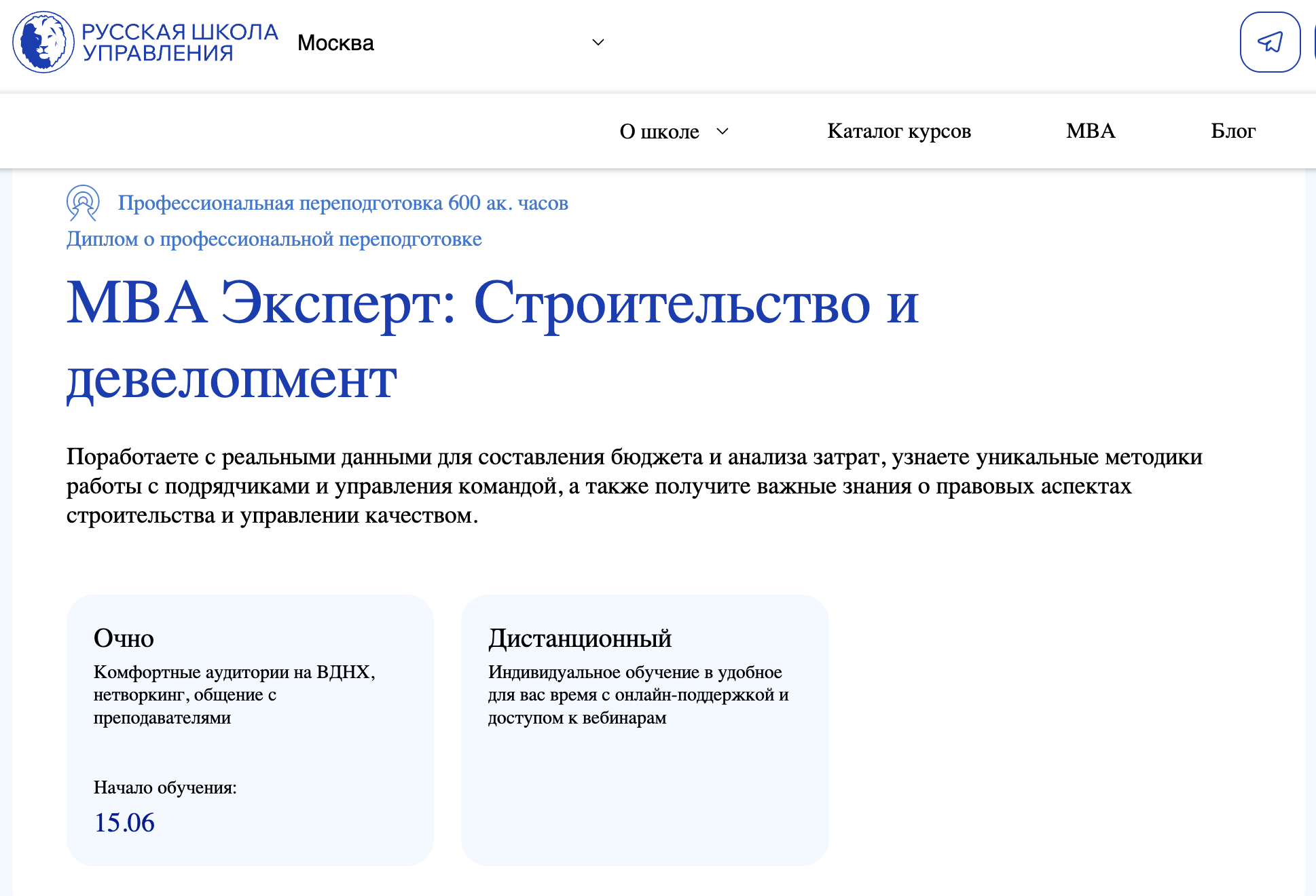 - Сайт: https://moscow.mba/programs/mba/online/construction-management