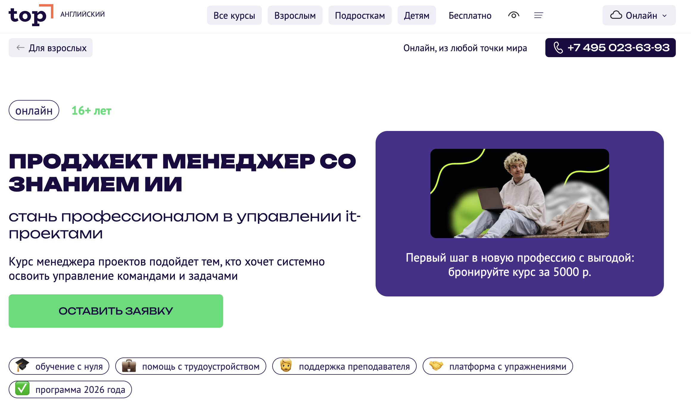 - Прозрачность условий: стоимость курсов, рассрочка, условия — только там, где это явно указано на странице.