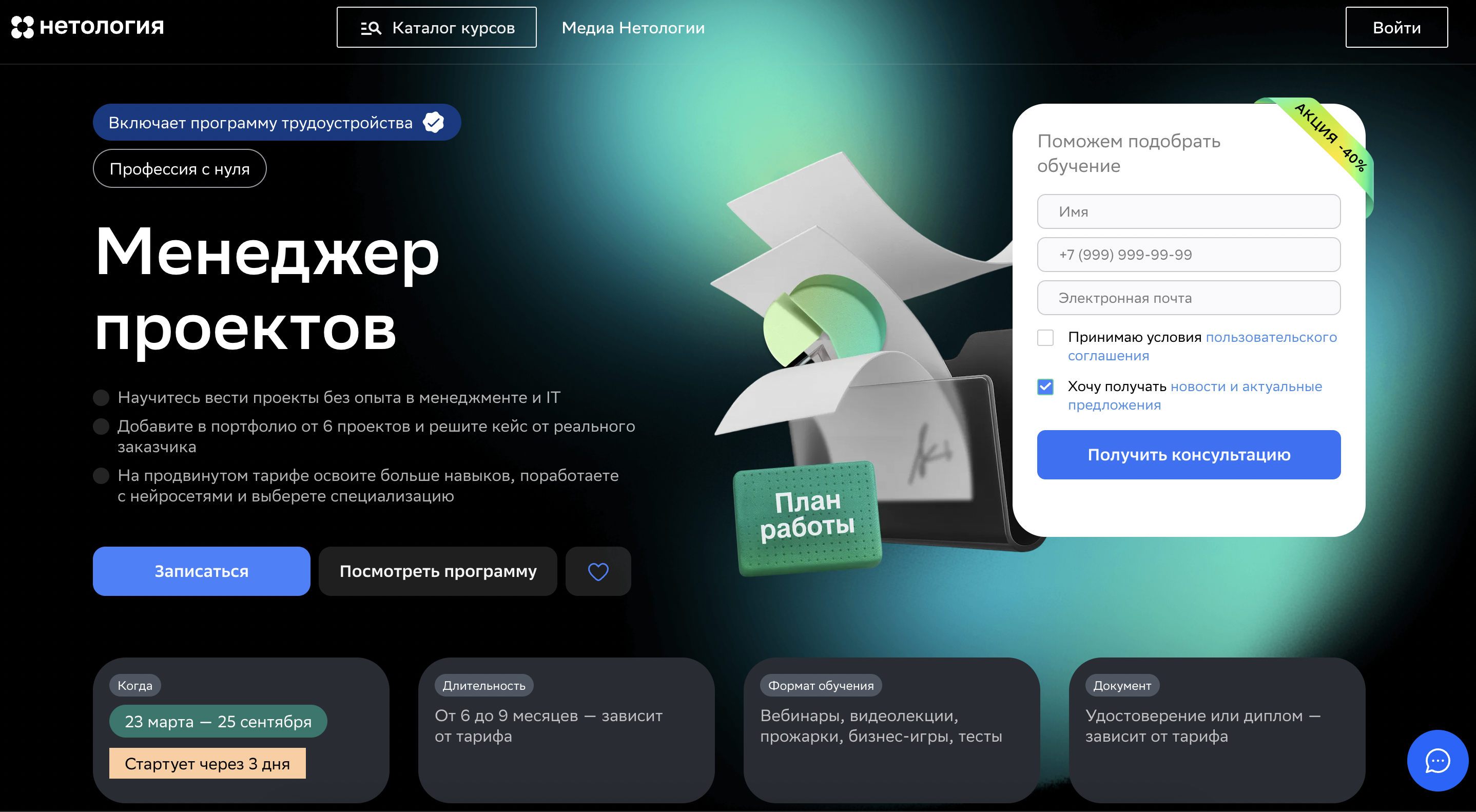 - Обновления образовательной программы по мере появления новых инструментов и методологий управления проектом — без доплаты