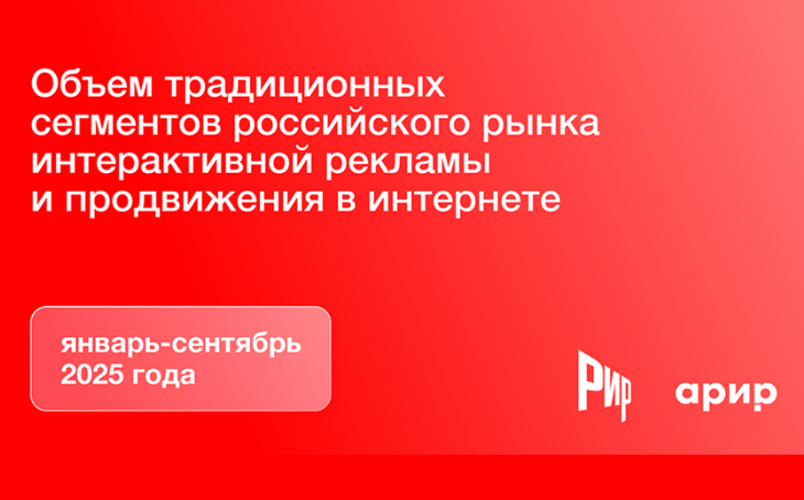 По данным Ассоциации развития интерактивной рекламы (АРИР), объём традиционных сегментов рынка рекламы и продвижения в интернете в январе–сентябре 2025 года составил 417,1 млрд рублей (без НДС). Это на 9% выше показателей аналогичного периода 2024 года.