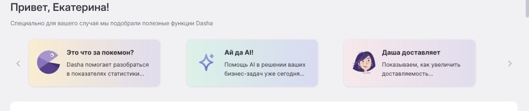Теперь при входе в аккаунт пользователь попадает в персонализированный обзорный экран. Новый интерфейс выстроен по принципу дашборда: ключевые действия и метрики доступны сразу после входа в аккаунт.
