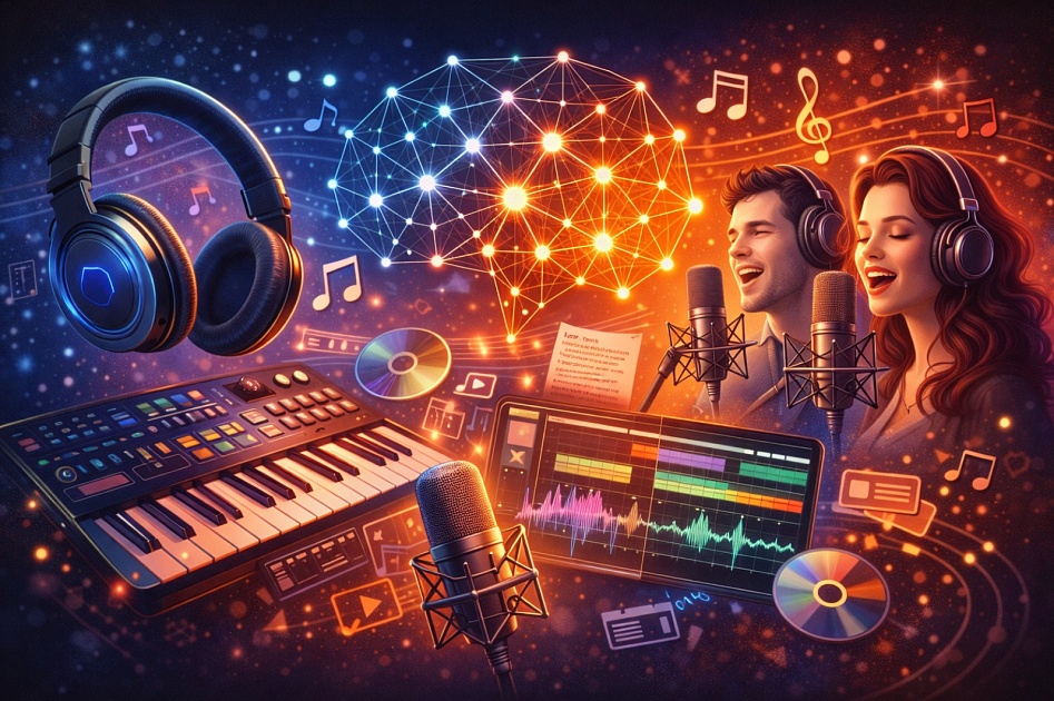 Я создал десятки треков через нейросети — от фоновой музыки для видео до полноценных песен с текстом и вокалом. Протестировал все популярные сервисы, разобрался, как правильно формулировать промты для музыки, какие жанры получаются лучше, где можно создавать бесплатно. В этой статье — всё о том, как нейросети создают музыку, лучшие сервисы и пошаговая инструкция по созданию своего первого трека.