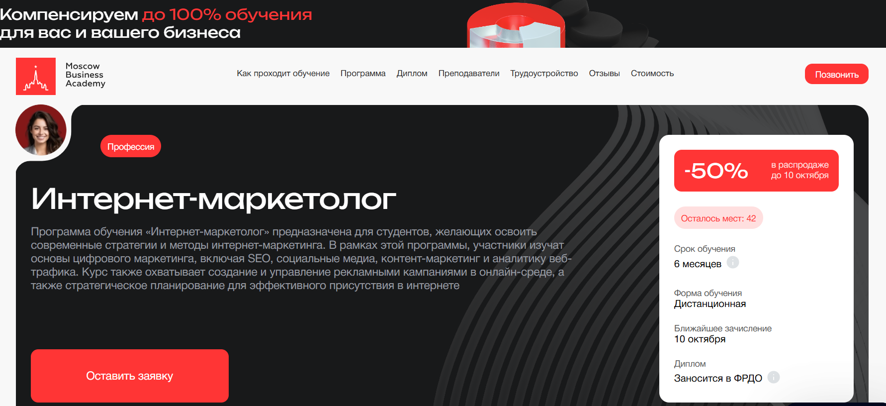 - Интернет-маркетолог – Московская Бизнес Академия (по промокоду onlinekursy скидка 10%)