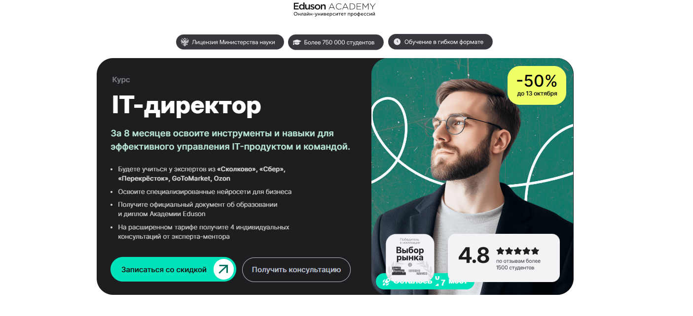 - IT-директор – Академия Eduson (по промокоду kursy скидка 5%)