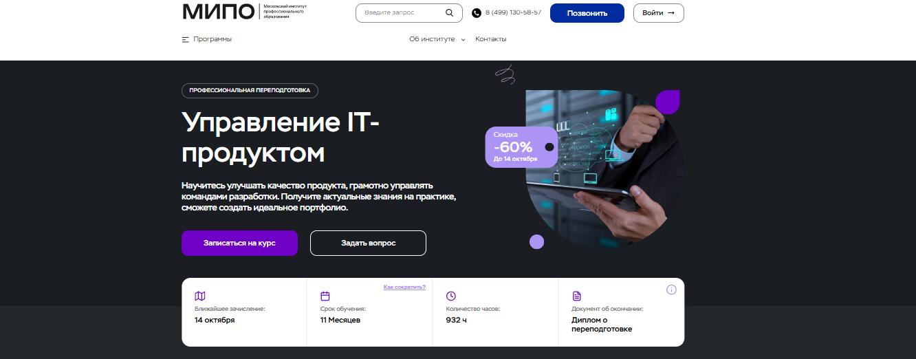 - Управление IT-продуктом – МИПО (по промокоду onlinekursy действует скидка 10%)