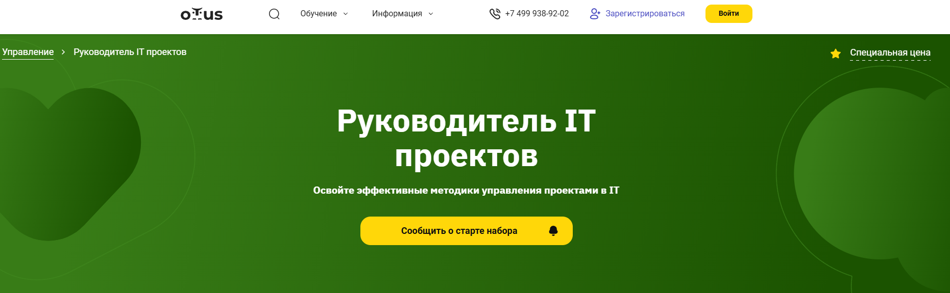 - OTUS (Руководитель IT-проектов): короткая программа (3 мес.), PMBoK-стандарт, финальный выпускной проект для портфолио.