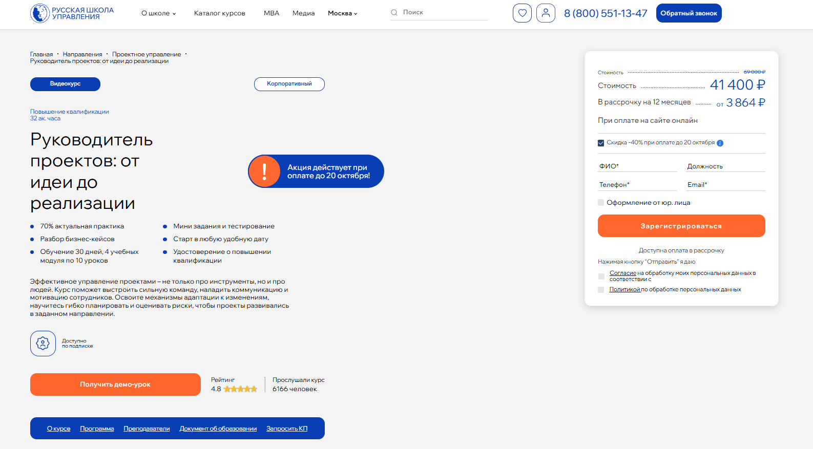 - Русская Школа Управления: курс 30 дней, 70% практики, документ гос. образца + федеральный реестр.