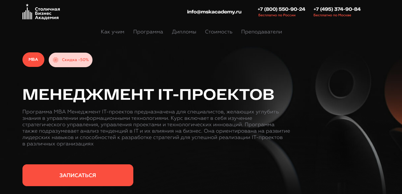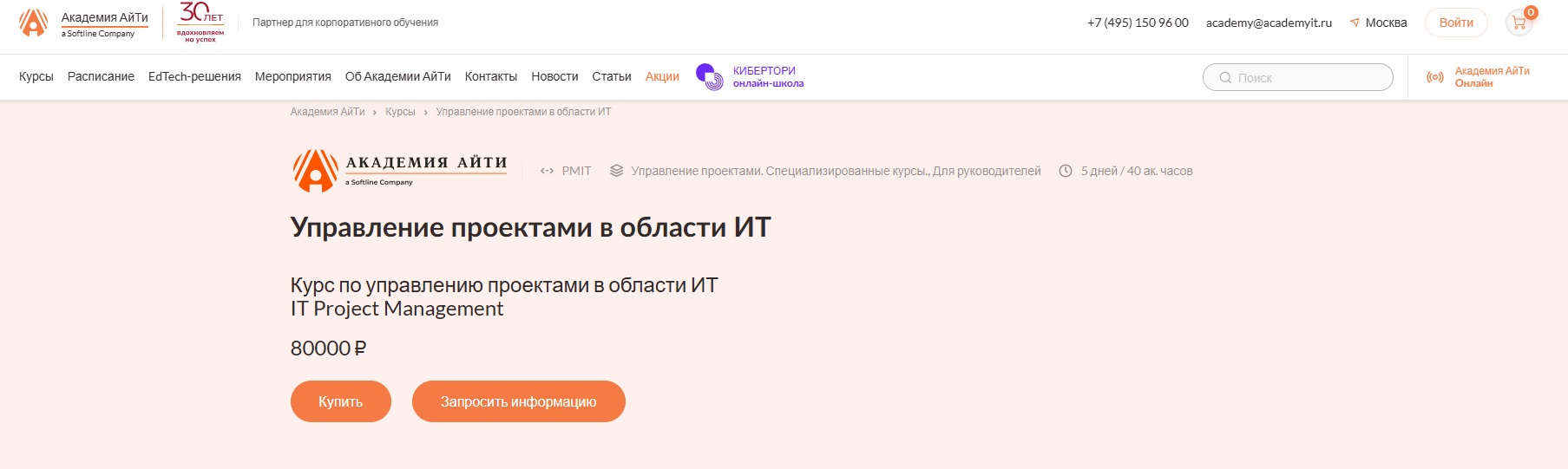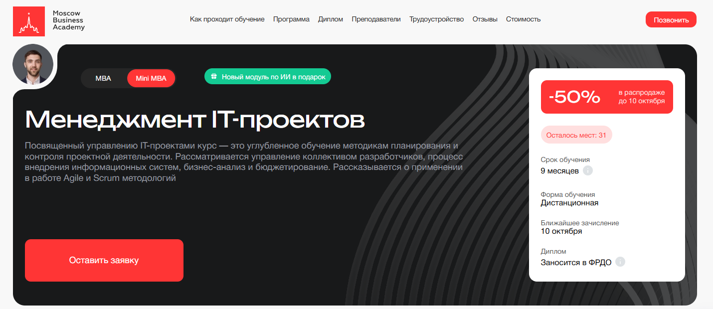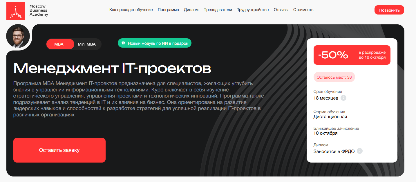 - Менеджмент IT-проектов — Moscow Business Academy (по промокоду onlinekursy скидка 10%)