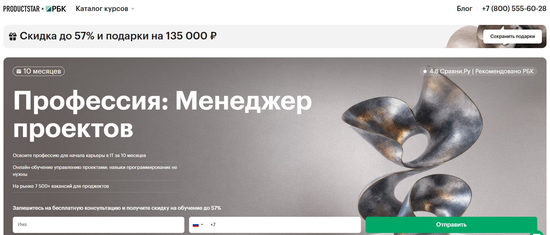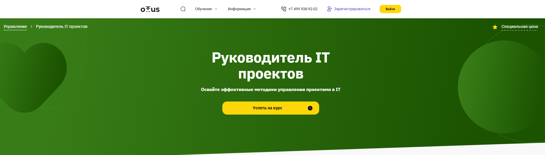 - OTUS: Живые вебинары, защита проекта, доступ к материалам после курса, акцент на стандарты PMBoK и практику.