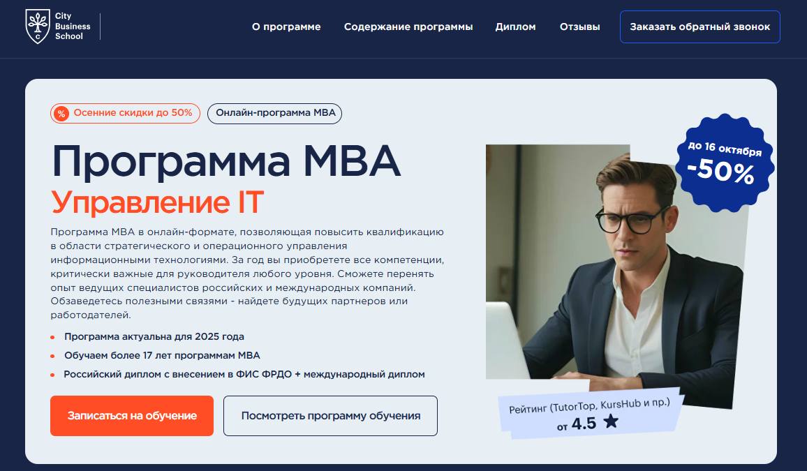 - City Business School: Два диплома (российский и EDLEA), формат 24/7, упор на практику и карьерную поддержку.