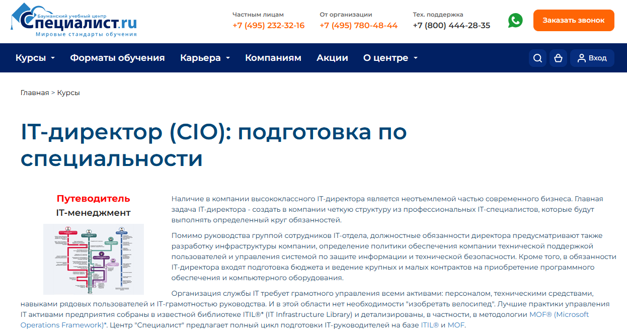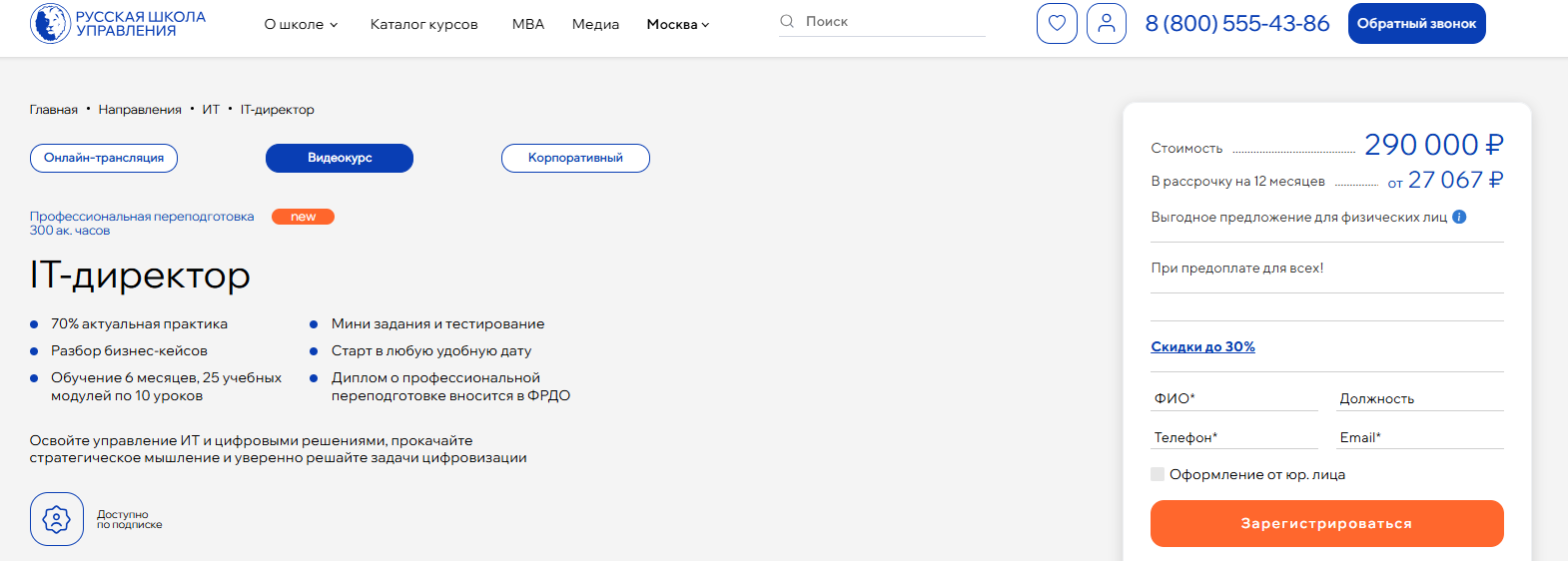 Отличительные преимущества каждого дистанционного курса обучения на IT-директора