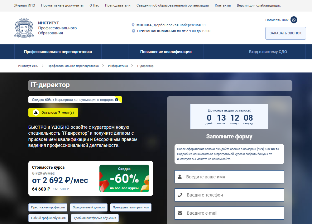 - Цена обучения: 146 712 рублей (с учетом скидки)