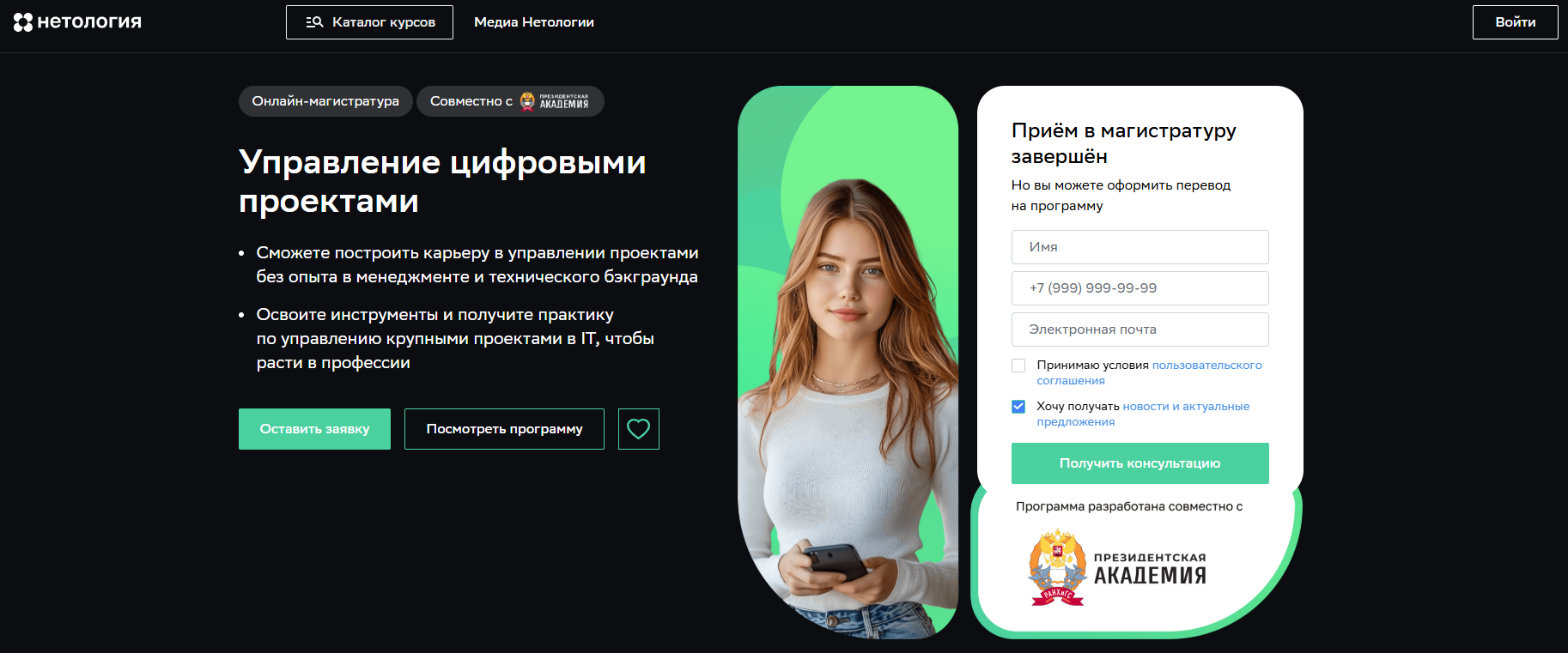 - Магистратура «Управление цифровыми проектами» – РАНХиГС и Нетология