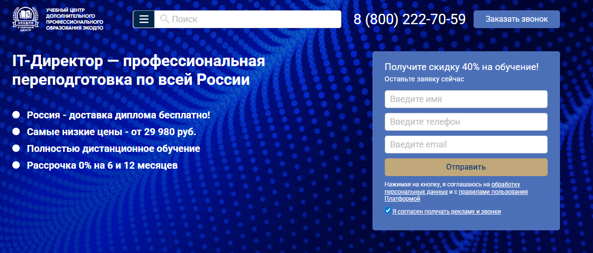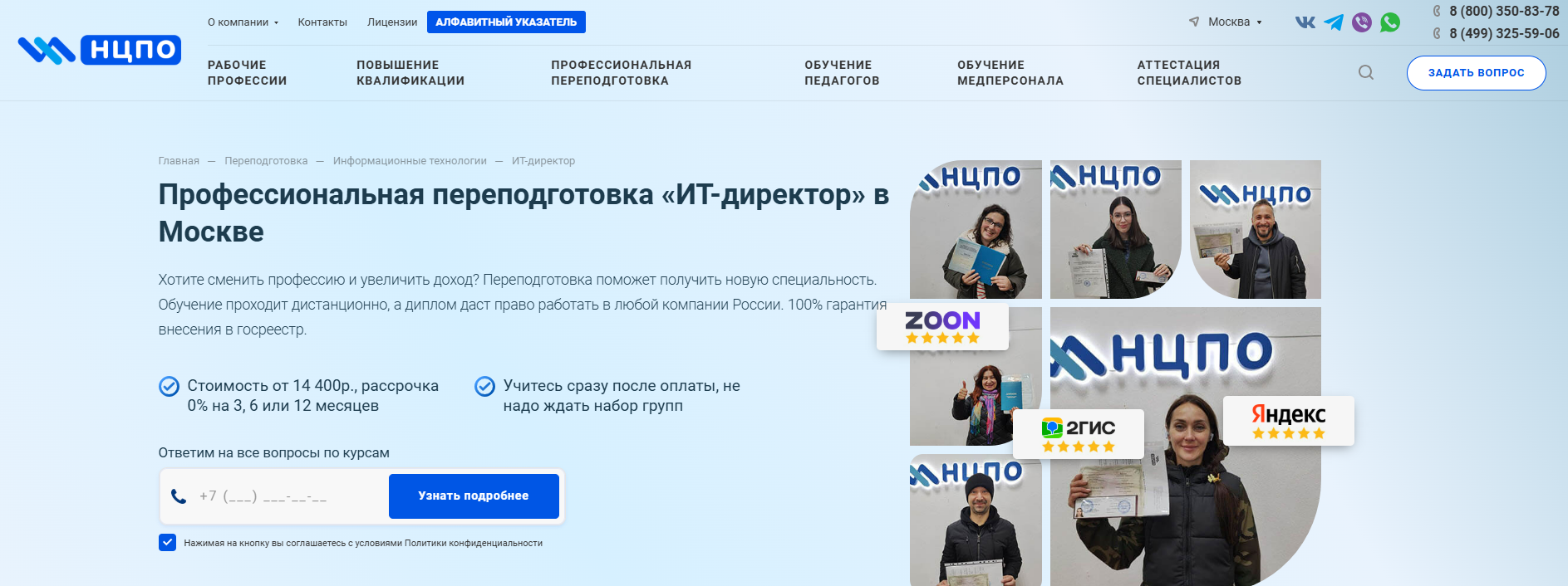 - ЭКОДПО: Быстрое обучение (от 1,5 мес), диплом установленного образца, доступ 24/7, фокус на управлении командами.