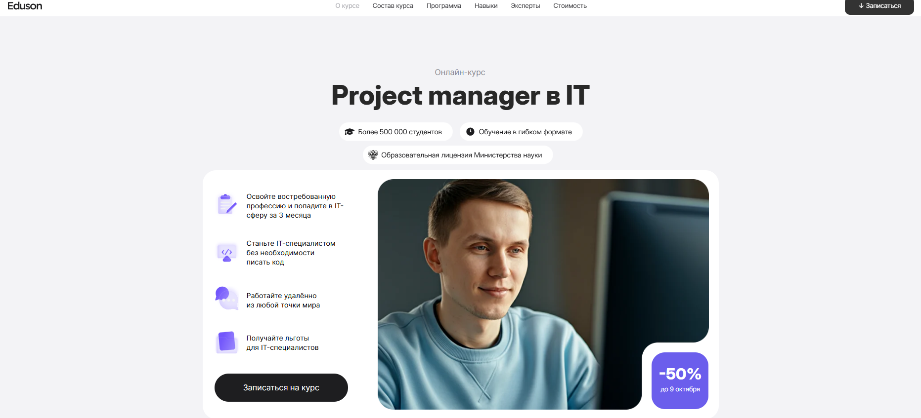 - Project manager в IT — Академия Eduson (по промокоду kursy скидка 5%)